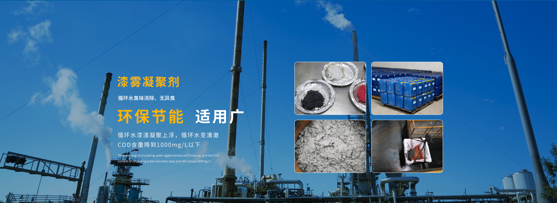 漆霧凝聚劑由破粘劑和絮凝劑組成,破粘劑大多由中等分子量的陽(yáng)離子聚合物組成,電荷極高,對(duì)漆滴能產(chǎn)生很強(qiáng)的吸引力,當(dāng)漆滴被“捕捉”吸附后它利用二極不同的親和性將漆滴完全包裹,并穿透漆滴,破壞涂料的功能基團(tuán),使其完全消除粘性,并帶動(dòng)被包裹破粘的漆滴上浮。絮凝劑大多由分子量幾千萬(wàn)的聚合物組成,通過在分子之間的“架橋”作用,聚集被破壞的漆霧和雜質(zhì)成較大的基團(tuán),使其堅(jiān)固和粘合,增強(qiáng)機(jī)械脫水的效率。絮凝劑還可中和系統(tǒng)電荷,保持系統(tǒng)中的離子平衡,且分子量較大,使凝集基團(tuán)在系統(tǒng)中上浮速度加快,并結(jié)成漆渣浮于水面。